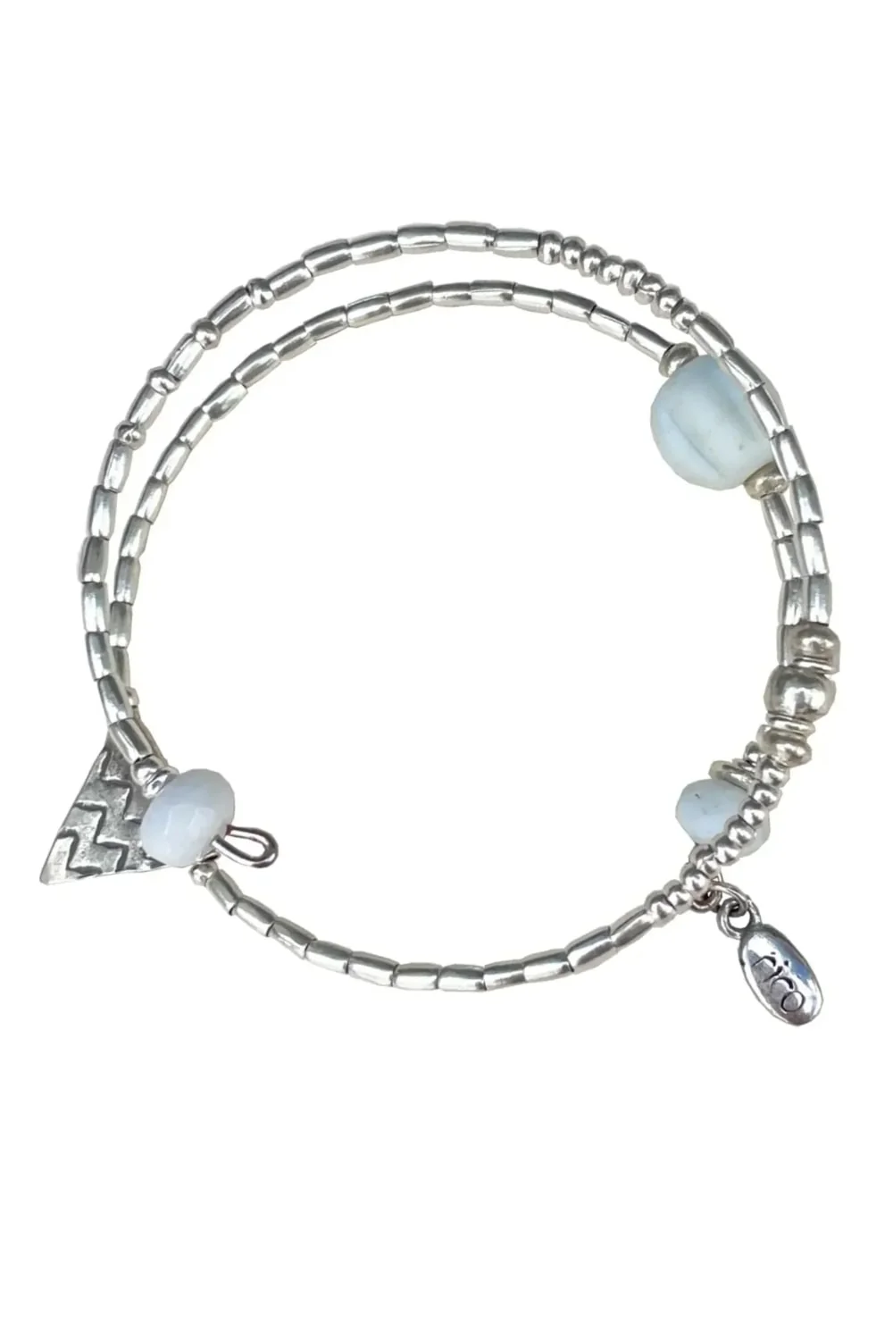 The Arctic Memory Wrap features white stones amongst pure silver embellishments. It is finished with looped ends. 1 with the RICO quality tag and one left blank. You have a choice to select an add on charm to attach to a single ending loop, or you may choose to leave it blank. Please check product images to see charms available ( small sterling silver amethyst or pearl pendant. Or choose a round 18mm sterling silver disc with hand stamped word [up to 5 characters]).
