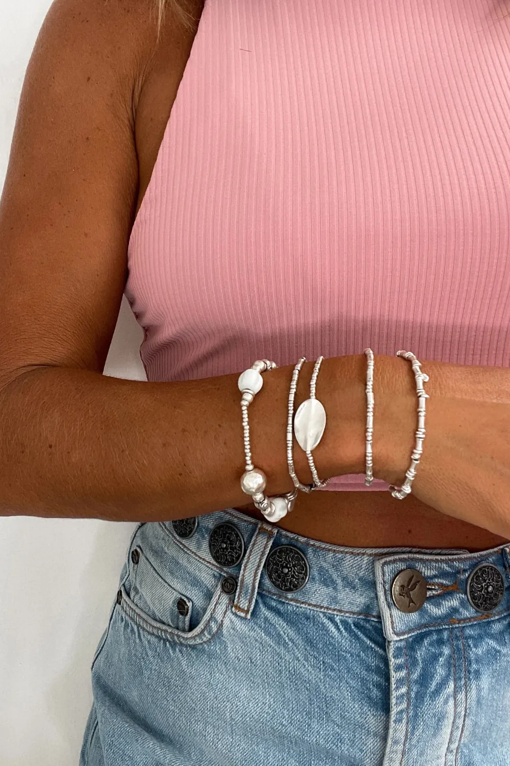 It is important to note that some bracelet styles will fit differently than others. To ensure the best fit, always use the size chart for your selected bracelet type (found at the bottom of every product page). As a guide, most bracelet lengths will add about 2 cm to the single wrist measurement. If a bracelet has thicker/bulkier components this this will be taken into consideration in the size chart as more length is needed.
