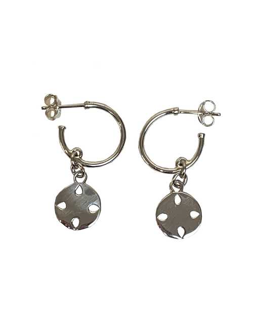Sterling silver 15 mm stud half hoops with sterling silver 11 mm disk.