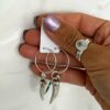 Hoop earrings with a difference. They feature a 24 mm sterling silver infinity hoop with pure silver chilli tassel and micro turquoise tassel. These charms are free hanging so feel free to take one off, change the order or mix it up to any combination your heart desires.
