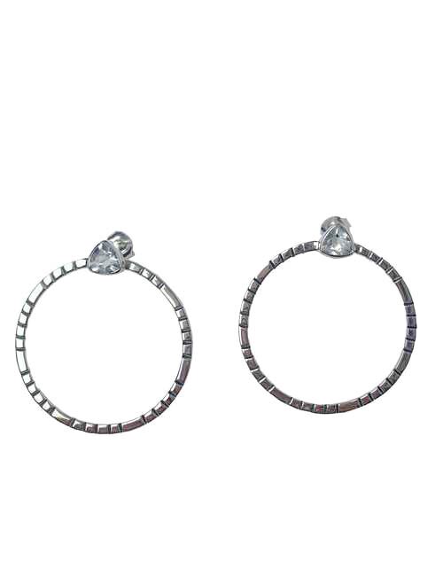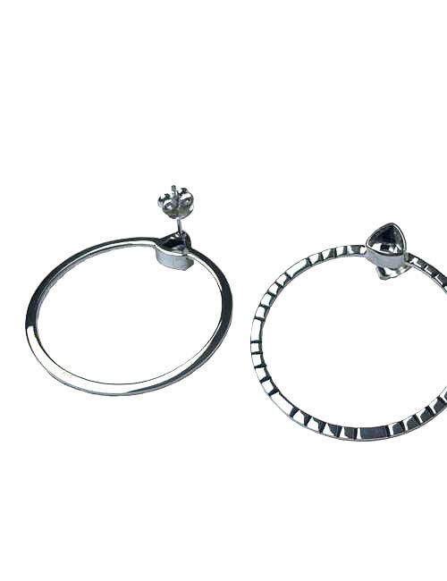 A stand out pair of hoop earrings featuring a trillion crystal quartz stone with stud back and a textured flat hoop.