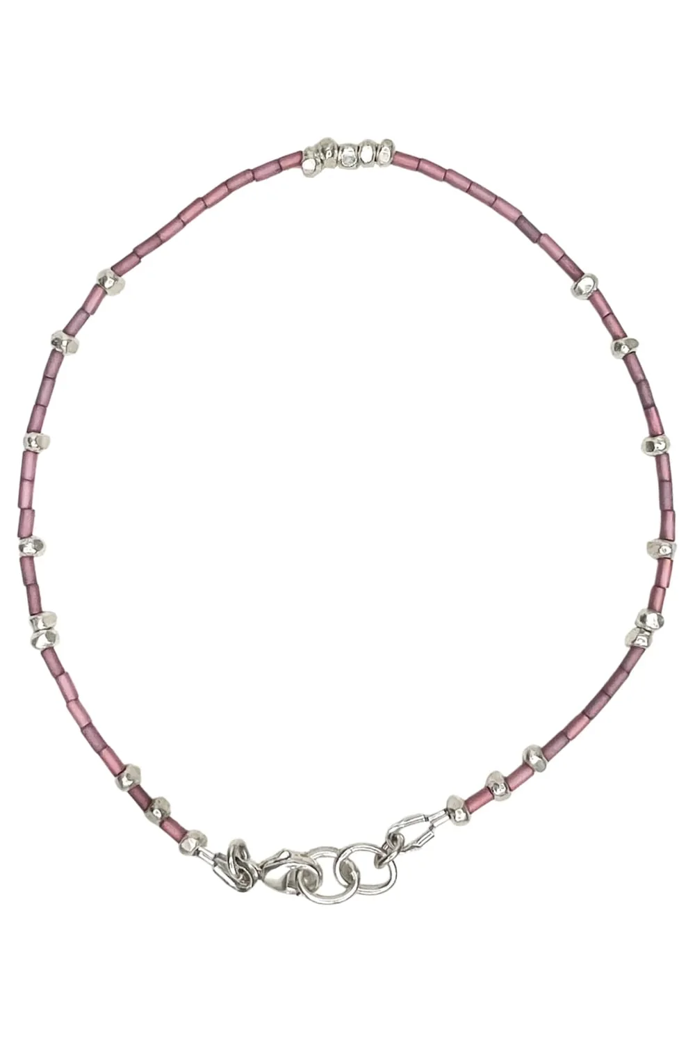 This piece is crafted with pure silver and strung on strong, flexible steel wire. While it can tolerate occasional water exposure, regular contact may cause the wire to corrode or weaken over time. For longevity, avoid water where possible and store in a dry, airtight container when not in use.