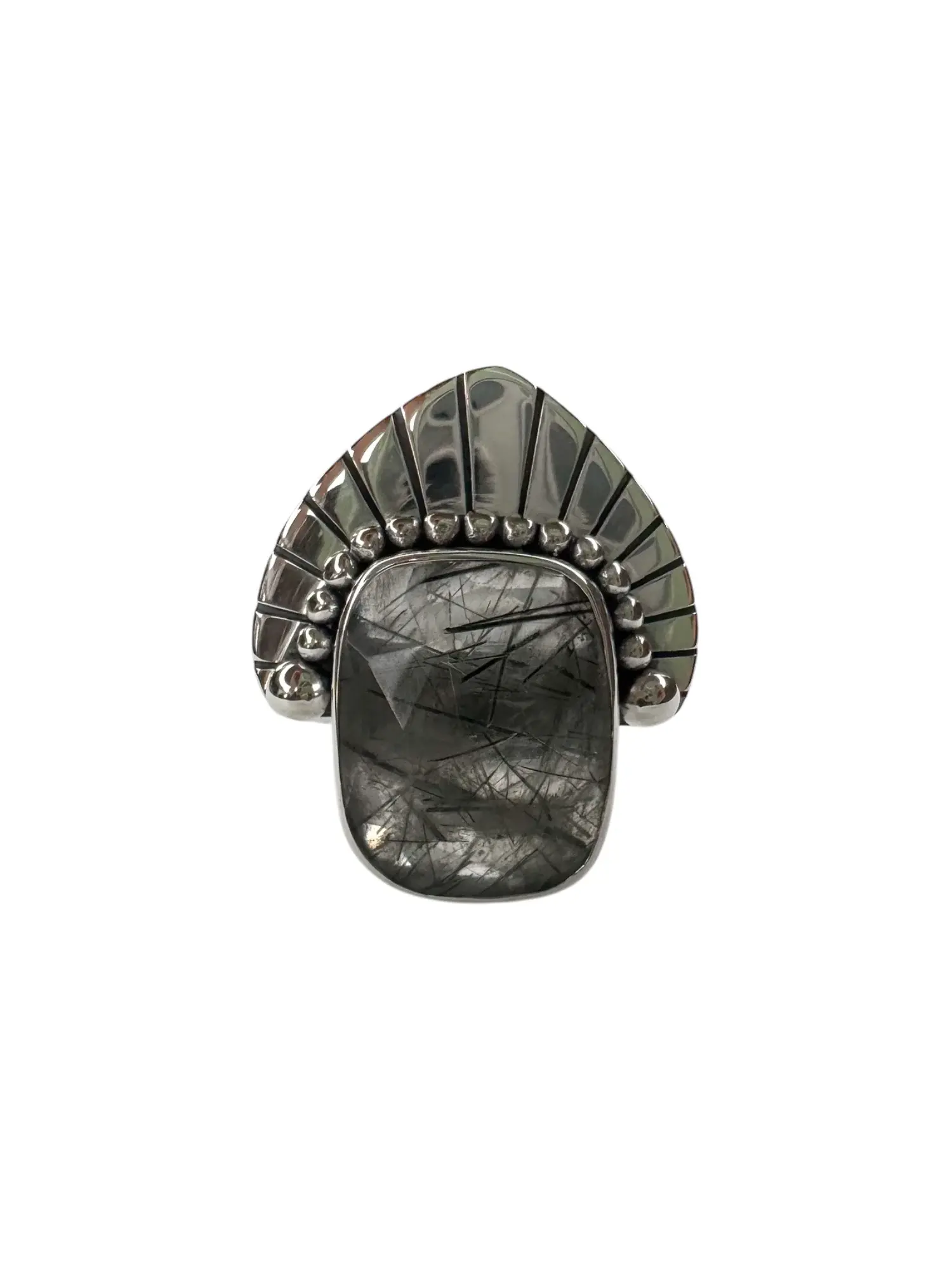 The Ebony Ring is here. The cousin to The Pink Empress ring has quickly become a new all time favourite. It features a beautiful black Rutilated Quartz gemstone with a sterling silver crown like setting. The beautiful black Rutilated Quartz varies greatly in shades of black and grey with beautiful line inclusions with the quartz. No two stones are the same.