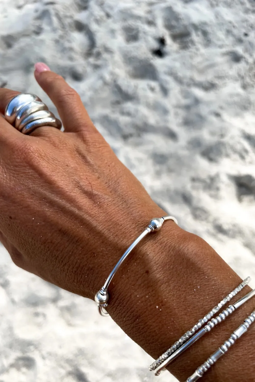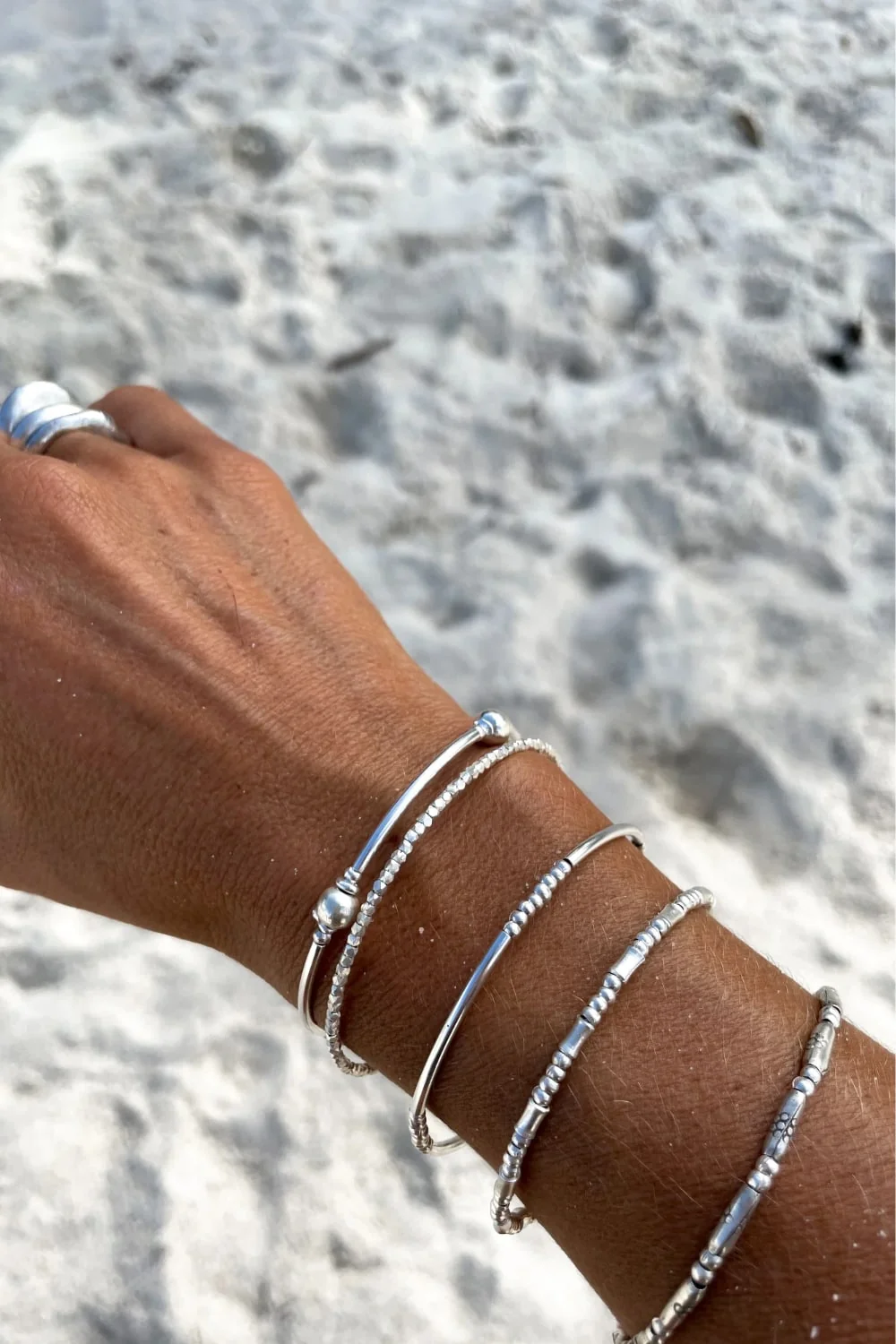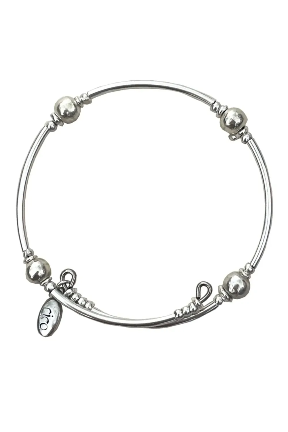 The Galaxy Memory Bracelet combines sterling silver tubes with small pure silver balls. It is finished with looped ends and 1 RICO quality tag.