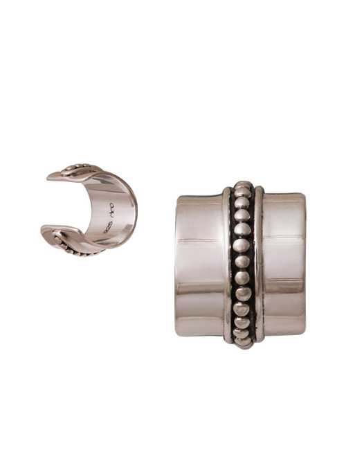 The Horizons sterling silver ear cuff. Fits best on ear cuff at the top end of your ear. Simply squeeze gently over the ear cartilage to secure in place. Designed to be worn for the ‘helix’ part of the ear. No piercing is needed. Check out product image to see the ear cuffs sitting next to each other from top view. A smaller cuff for the outside rim of ear.