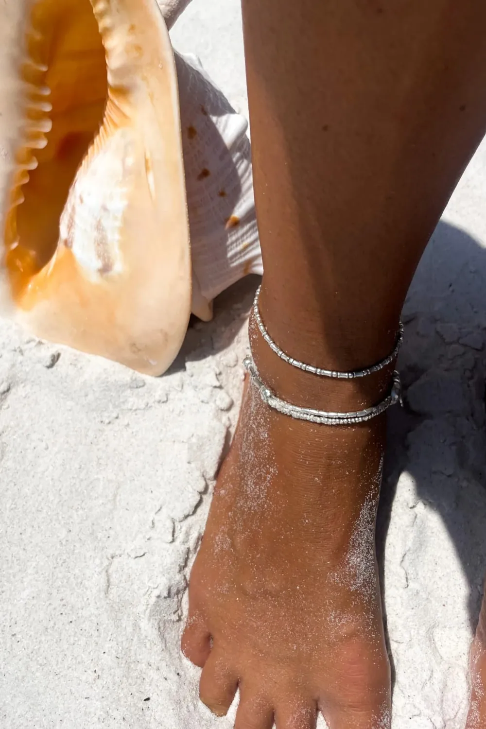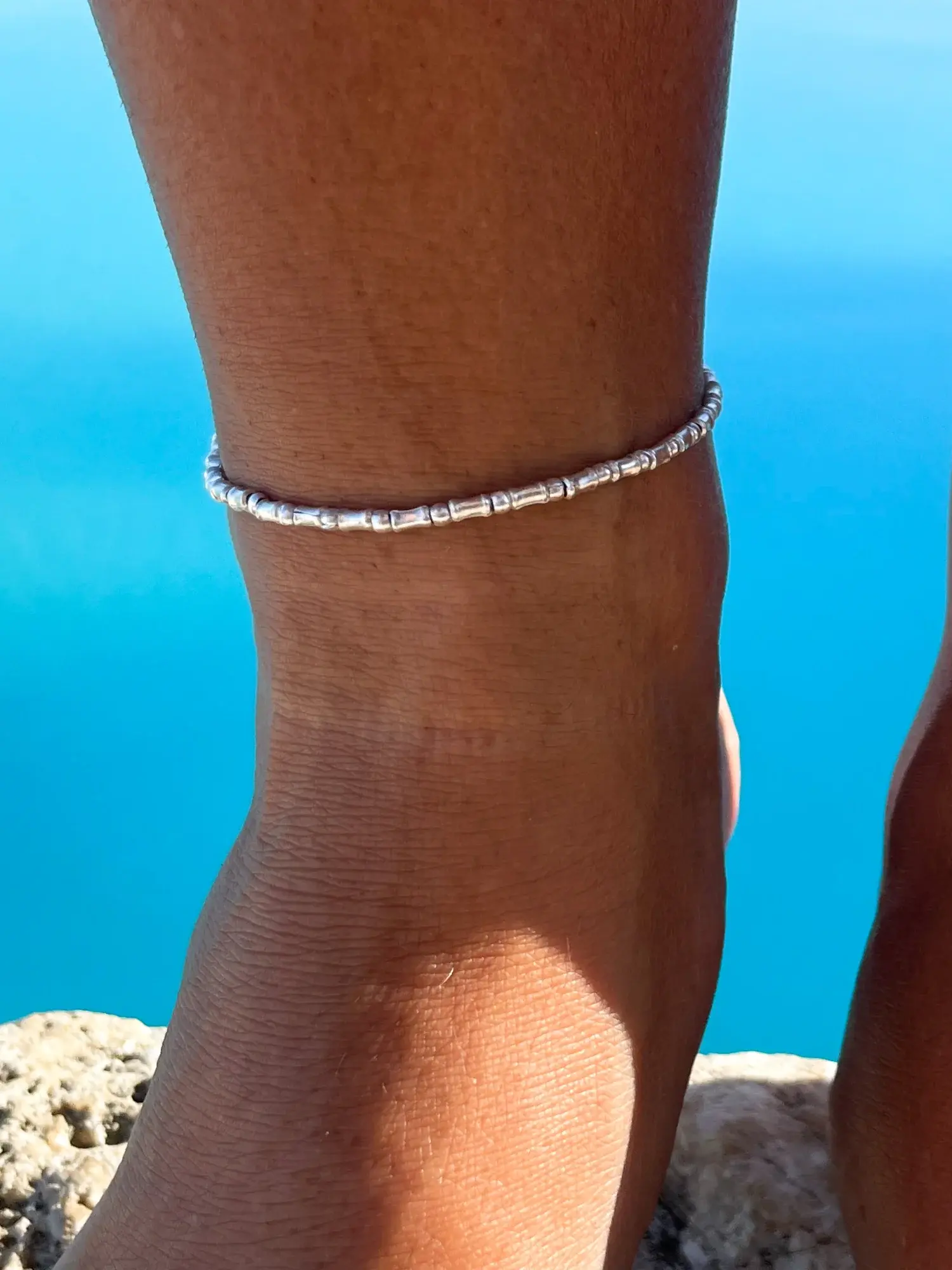 A new addition to the minimals range this pure silver anklet adds a hit of texture while still keeping this simple. It features a fine line of mini bamboo shaped silver. Wear me solo or stack me up.