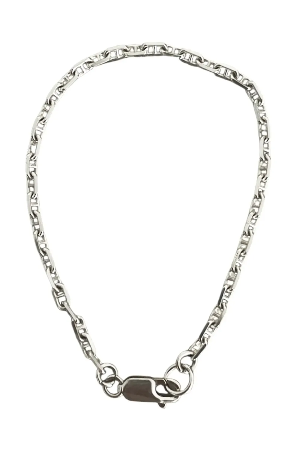 A minimal bracelet designs. This stunning sterling silver oval link chain bracelet looks amazing on its own or with other Rico bracelets. It is designed to be a snug fit. It connects via a sterling silver parrot clasp with a streamline look with no tassels hanging. The oval links are split in half by a silver bar and the links are fairly thick and sturdy relative to its size. I put this beauty on straight away and haven’t taken it off since.