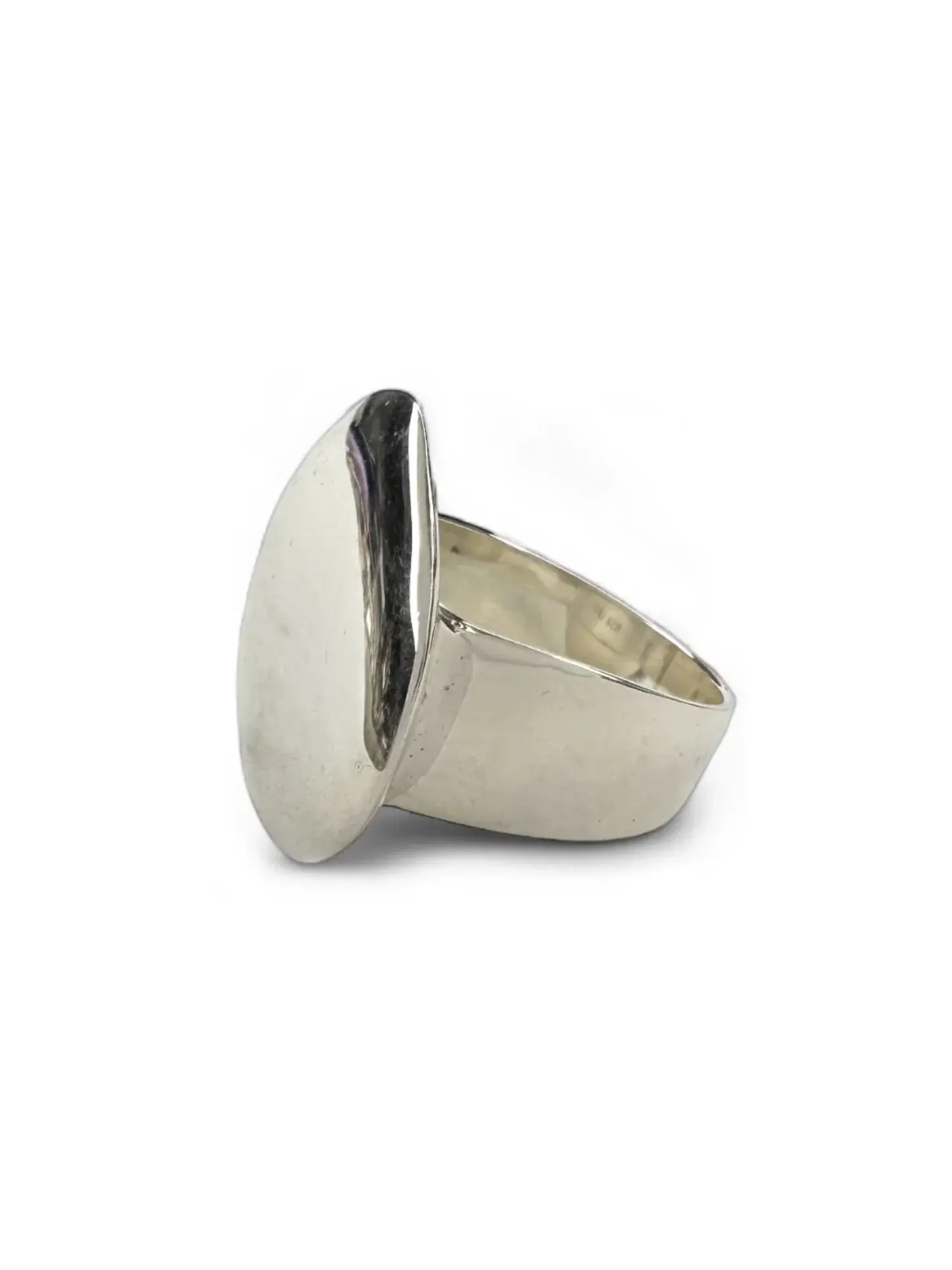 A chunky new feature ring to add to the collection. The Odyssey Ring packs a punch. It is a solid sterling silver ring with a high polished organic shape surface.