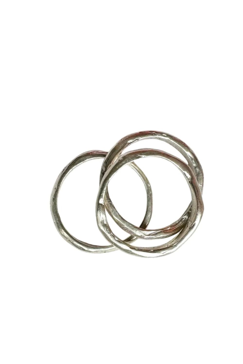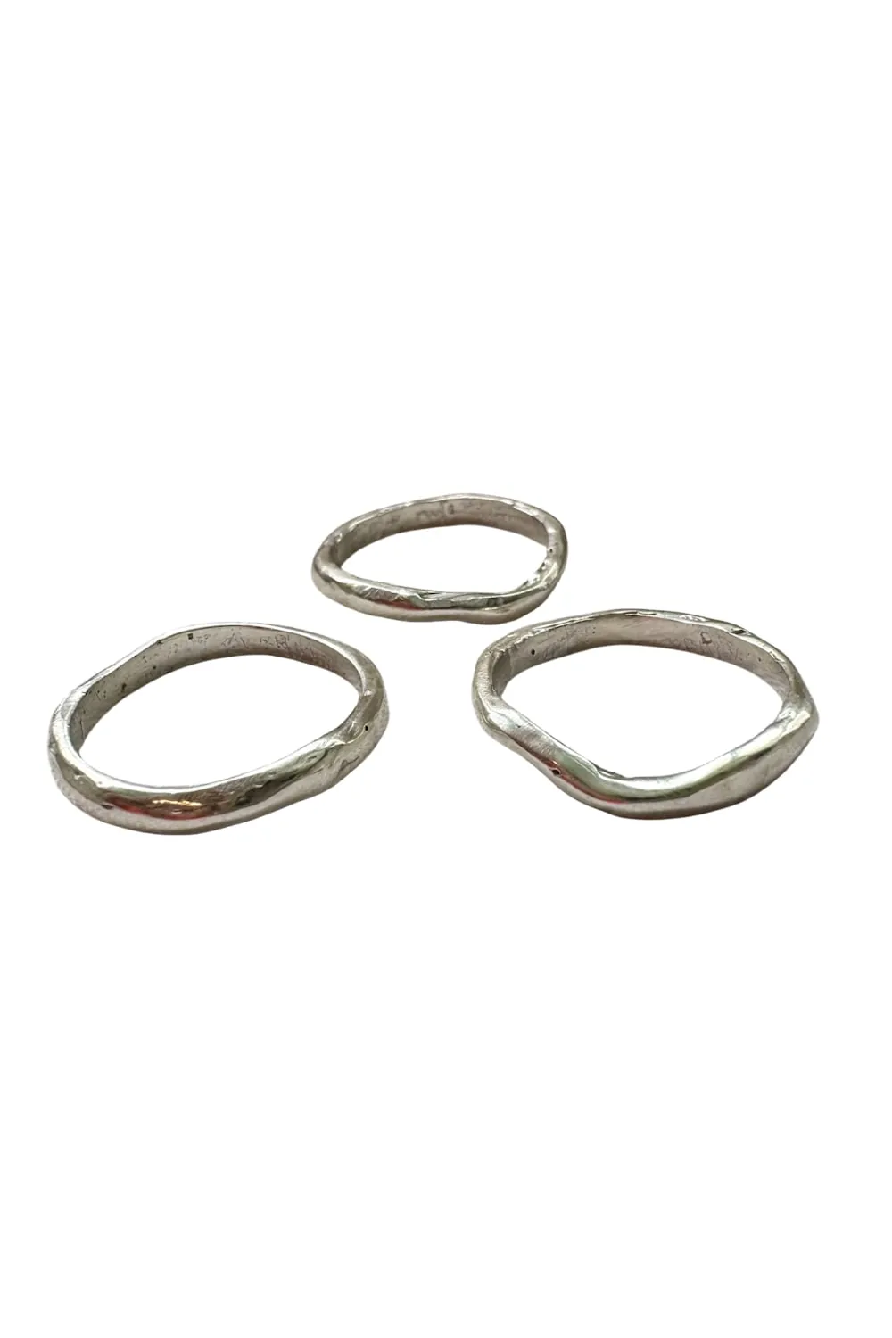 The Organic Stacker Set features a distinctive trio of sterling silver rings, each with a uniquely organic edge. Handcrafted to showcase an almost molten texture, these rings are sculpted with an uneven band design, creating slight gaps when stacked. This results in a striking, textured look that enhances your ring collection. Wear them together as a set or mix and match with other Rico Designs pieces for a personalised style. These rings are the first of their kind, and currently the only ones available.