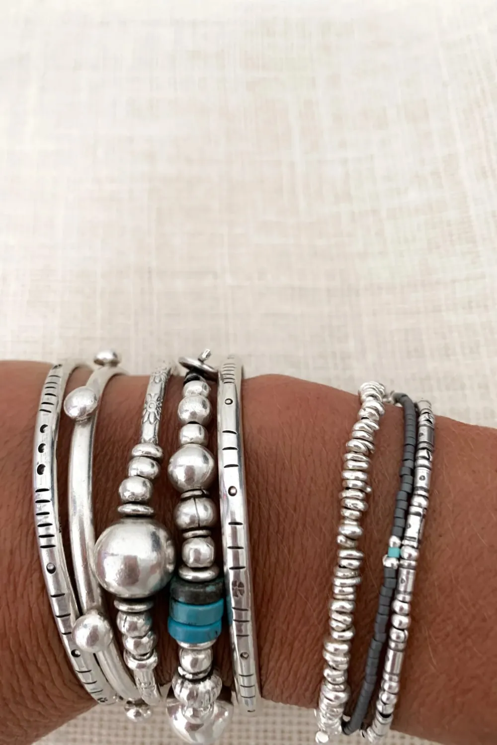 It is important to note that some bracelet styles will fit differently than others. To ensure the best fit, always use the size chart for your selected bracelet type (found at the bottom of every product page). As a guide, most bracelet lengths will add about 2 cm to the single wrist measurement. If a bracelet has thicker/bulkier components this this will be taken into consideration in the size chart as more length is needed.