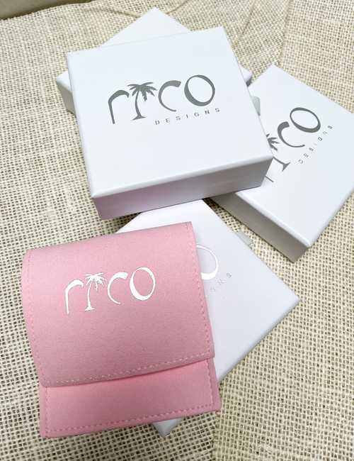 Shopping for a gift and need extra packaging? 1 set include 1X Rico branded white box and 1X pink micro suede pouch.