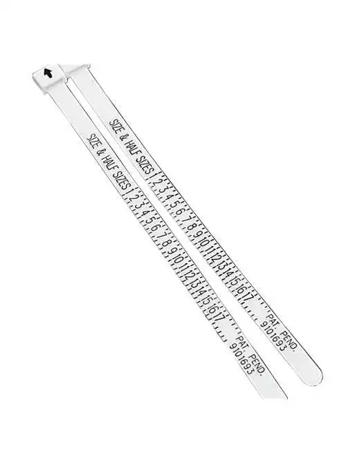 This easy to use ring sizer works like a belt. Simply push the end through the buckle to form a ring shape and use it to measure your desired finger. Make sure the fit is comfortable and that you can slip the belt on and off over your knuckle. The arrow on the buckle will indicate which size will fit you best.