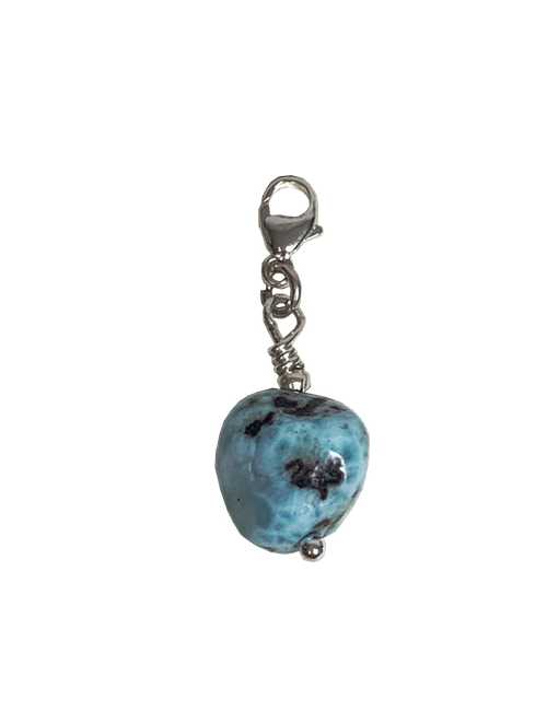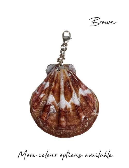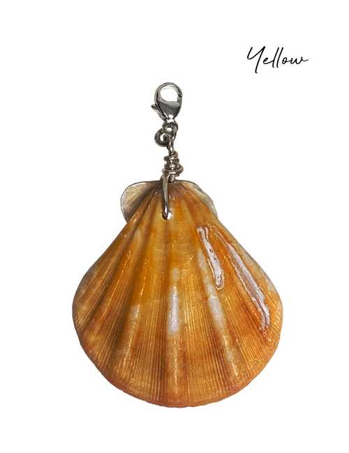 This charm features a pure silver cowrie shell connected to a sterling silver clip on parrot clasp.